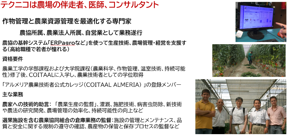 - 高給職種としての憧れ: アルメリアでは、システムを使いこなし持続可能な農業を支えるテクニコは、若者が憧れる専門性の高い「高給職種」となっています。これは、JAにおける人材確保と職員のモチベーション向上に直結します。