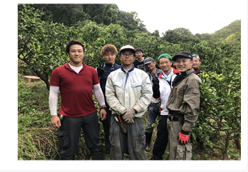 この春には正社員の新規採用を計画したものの、農林大学校の卒業生を確保することが出来なかった。やむなく正社員一名で3ヘクタール余りのみかん園を管理することとなった。剪定作業、薬剤散布、施肥はなんとか社員の週休二日制においてもクリアー出来てきたが、夏場に入り、時間を要する摘果作業や除草作業の遅れで苦労した。今年の夏場は多雨であったため、雑草が勢いを増して繁茂し、御進物ニーズを中心に生産している中生温州みかん園の50アールが雑草(カズラ)に覆われ、みかんの樹が見えない状況となった。その理由は、極早生、早生と園地毎に順番に摘果作業を実施し、定期的に病害虫防除をおこなっていたが、重要な摘果作業を優先して、そのみかん園のみ除草作業を1回見送ってしまったためである。雑草に覆われた果樹は、薬剤散布が出来ない状態になってしまった。やむなくグロワー/シッパーとしてスタートした株式会社みかんの会に作業の応援を求め、社員ら9名の若者が3日間で50アールの樹園地の除草を完了させてくれた。著者ひとりの個人経営であったなら、既に諦めていたかもしれない状況であった。